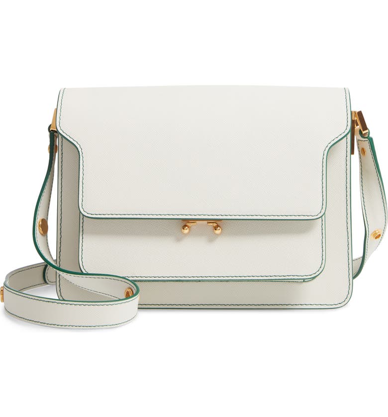 Contact us 24/7 +1 877 678 9627. MARNI Trunk textured-leather shoulder bag. This white Trunk shoulder bag from Marni is a timeless addition to your everyday wardrobe.