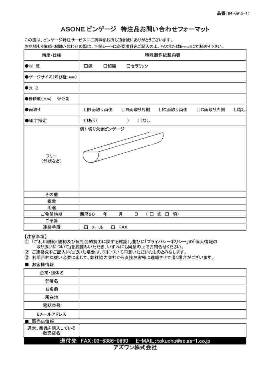 64 0915 11 ピンゲージ 特注製作 Axel アズワン