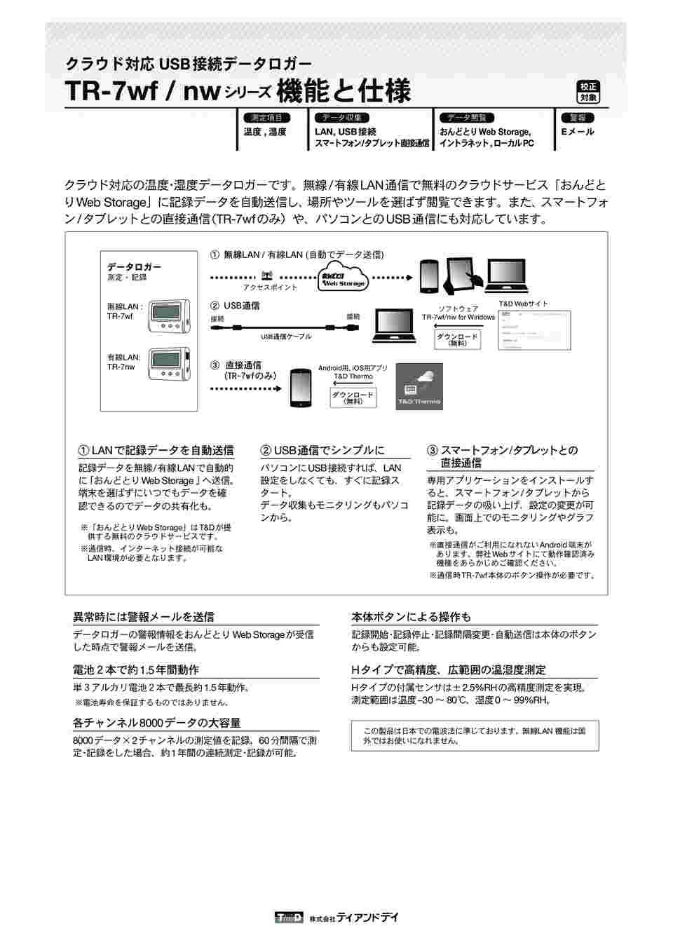 温湿度データロガー おんどとり Tr 7wbシリーズ カタログ 資料 株 ティアンドデイ 製品ナビ