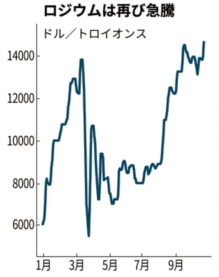 ロジウム最高値 中国の自動車生産が回復 需給に逼迫感 日本経済新聞