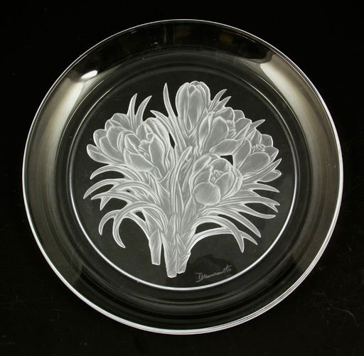 Vintage Crystal Hoya Daffodil Plate Signed T Yamamoto Plates Vintage Crystal Crystals