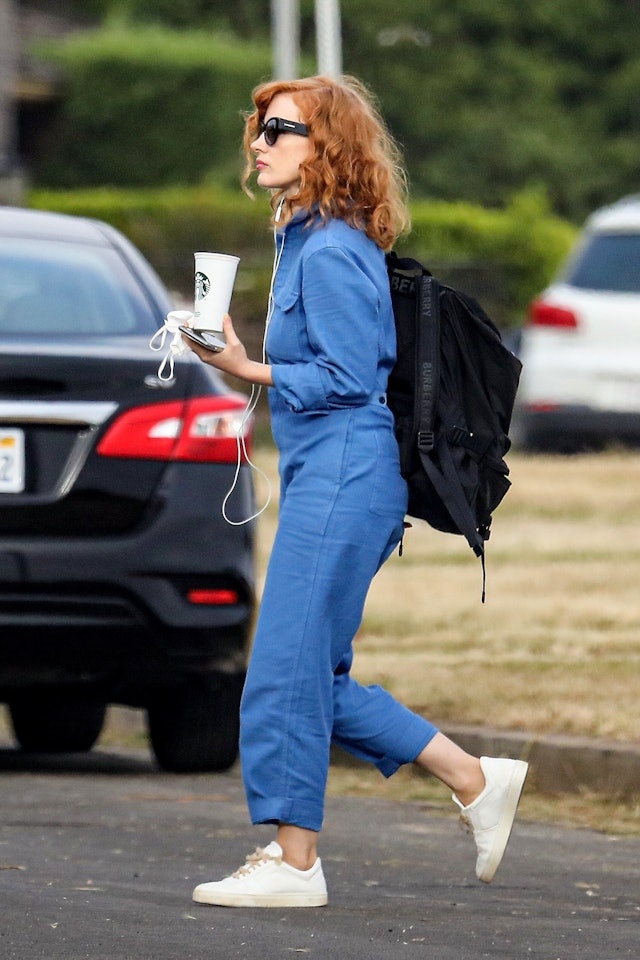 Jessica Chastain S Burberry Backpack Is The Ideal Low Key Carryall For Errands