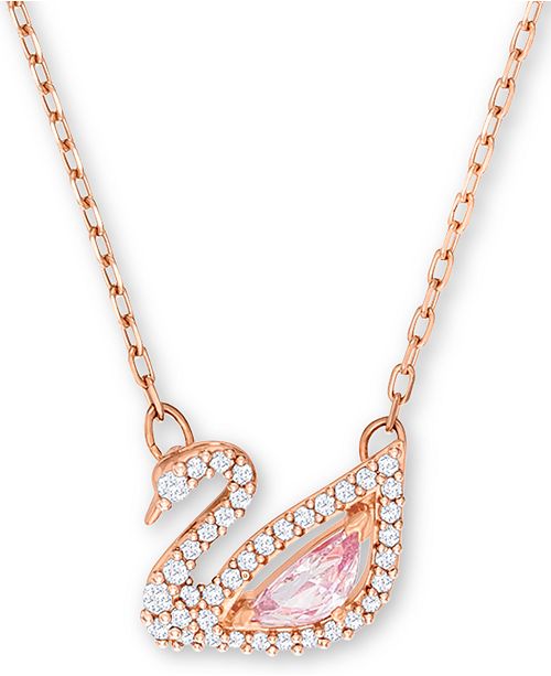 Swarovski Rose Gold Tone Crystal Swan Pendant Necklace 14 7 8 2 Extender Reviews Necklaces Jewelry Watches Macy S